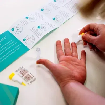 Finger-prick blood test.