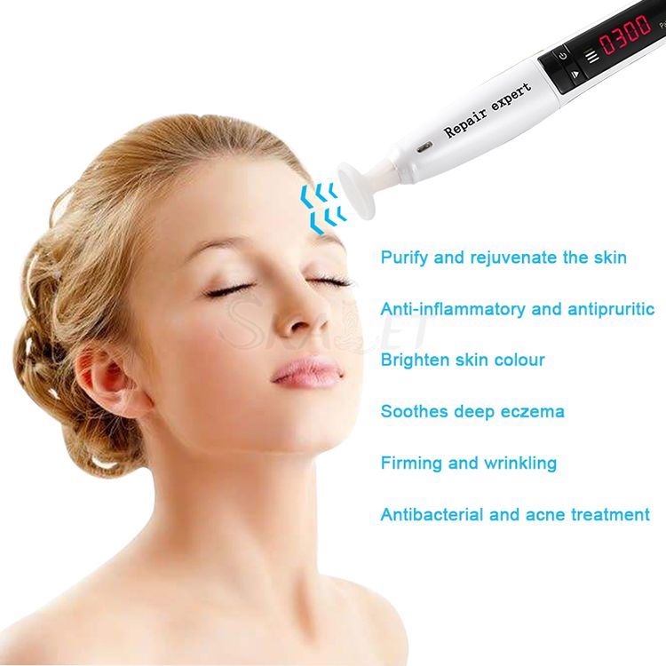 Wavelength 423mm. The blue light attackes PP-9 producing singlet oxygen. This form of oxygen is very toxic to acne bacteria that causes acne. Sterilises the skin controling bacteria and sebaceous glands, helps inflammation and calming the skin.